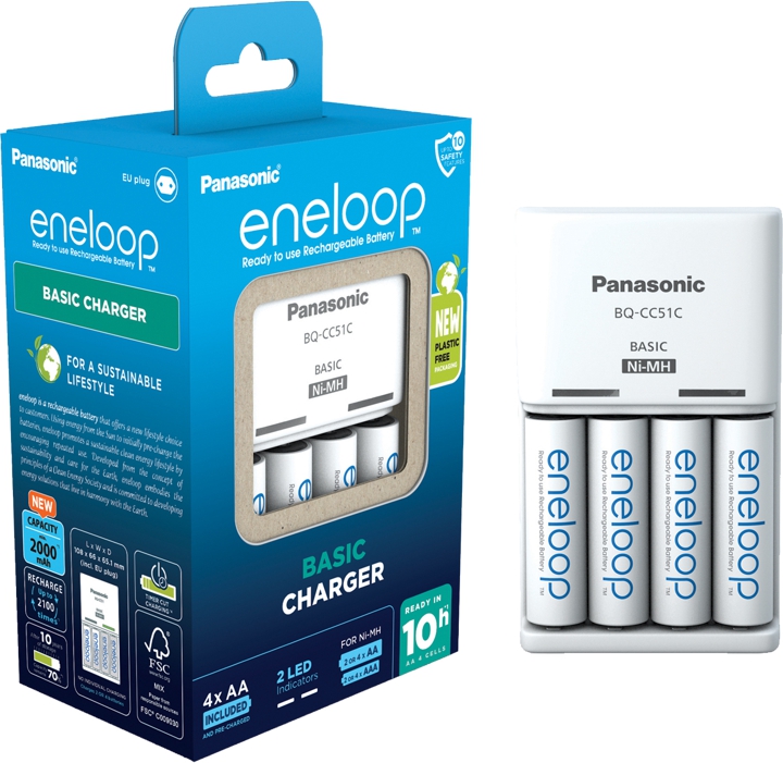 Panasonic Eneloop BQCC51 Oplader inkl. 4 stk. Genopladelige AA Batterier